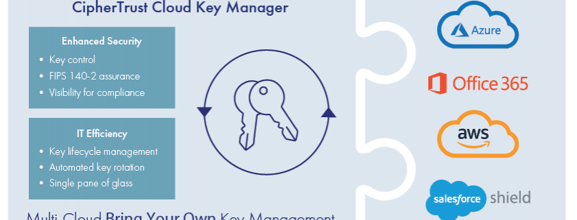 Data Encryption solutions from leading public cloud providers such as Microsoft Azure, Amazon Web Services and Salesforce.com provide Bring Your Own Key (BYOK) services that enable customers to separate key management from provider-controlled encryption. CipherTrust Cloud Key Manager utilizes BYOK services to deliver key generation, separation of duties, reporting, and key lifecycle management that help fulfill internal and industry data protection mandates, all with FIPS 140-2-certified secure key storage.